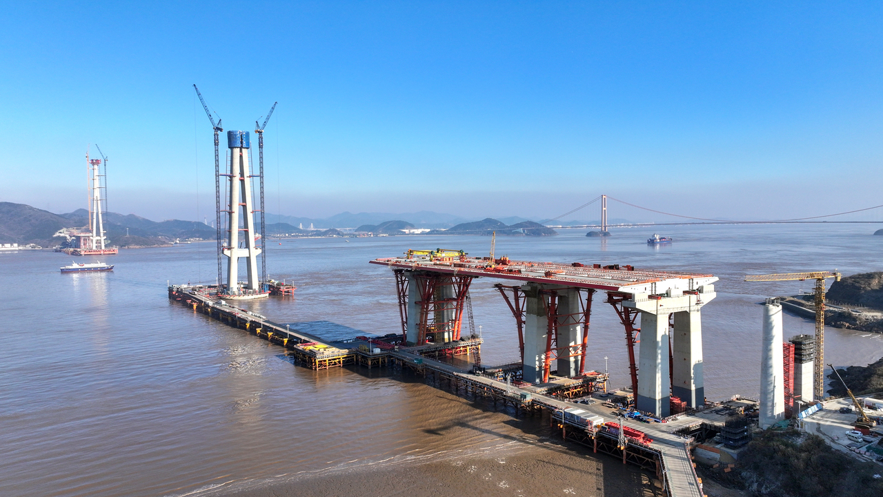 西堠门公铁两用大桥4号主塔中塔柱合拢